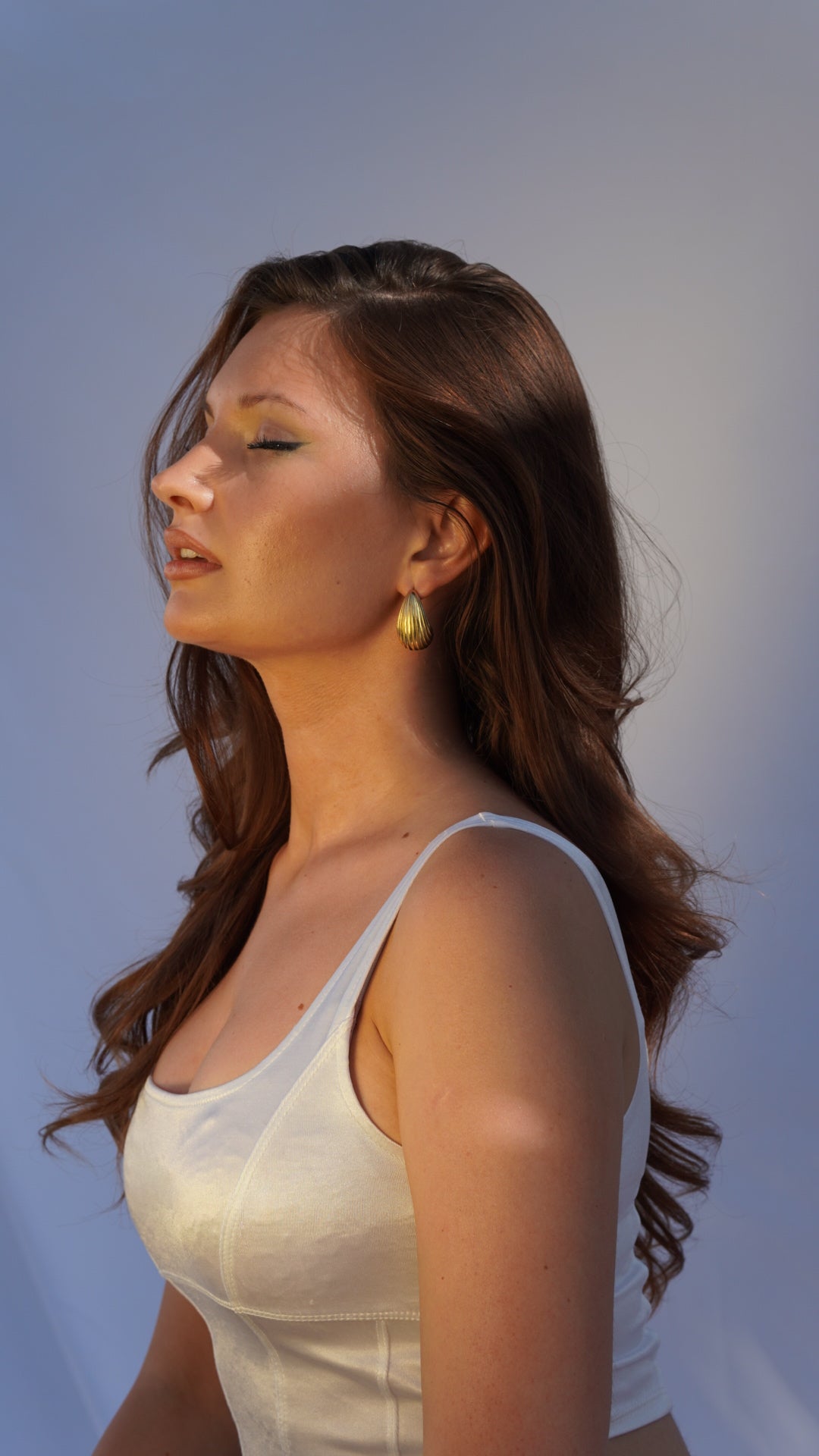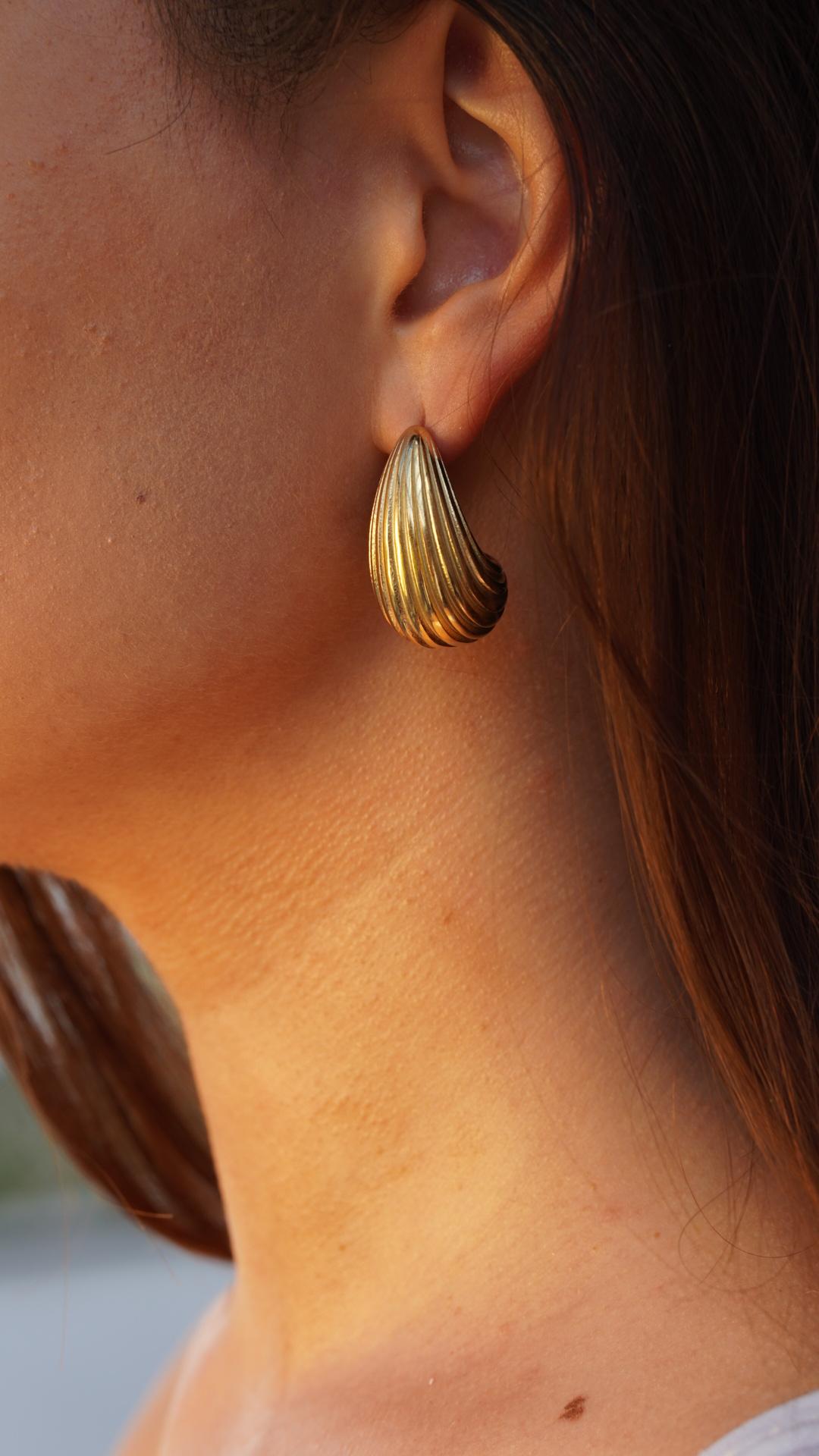 The Anaya earrings are a stunning piece of jewelry that impresses with its unique shape and shiny gold look. The gently curved lines and grooved surface give the earrings a dynamic yet elegant look. These earrings are perfect for special occasions or to add elegance to an everyday outfit. With their high-quality workmanship and timeless design, the Anaya earrings are a must-have for every jewelry lover.