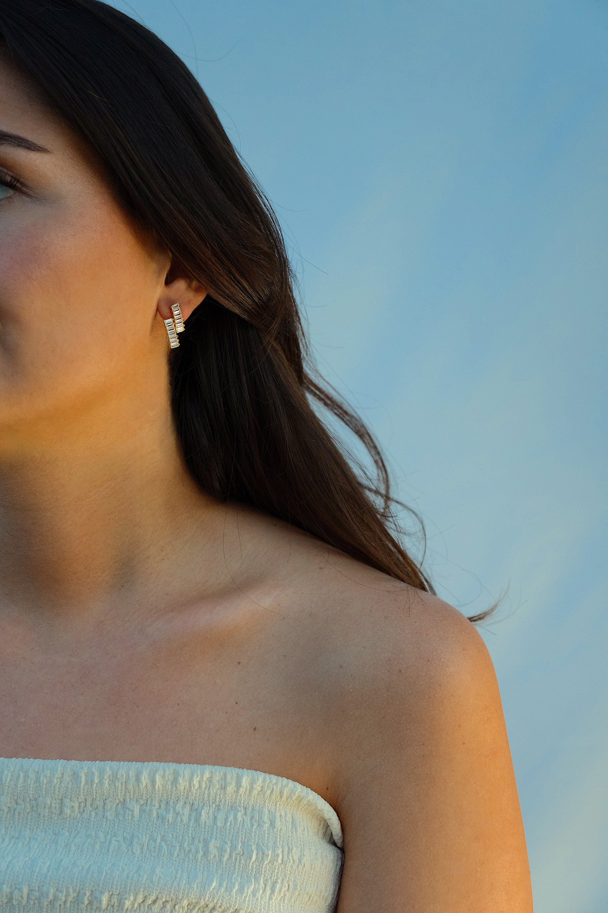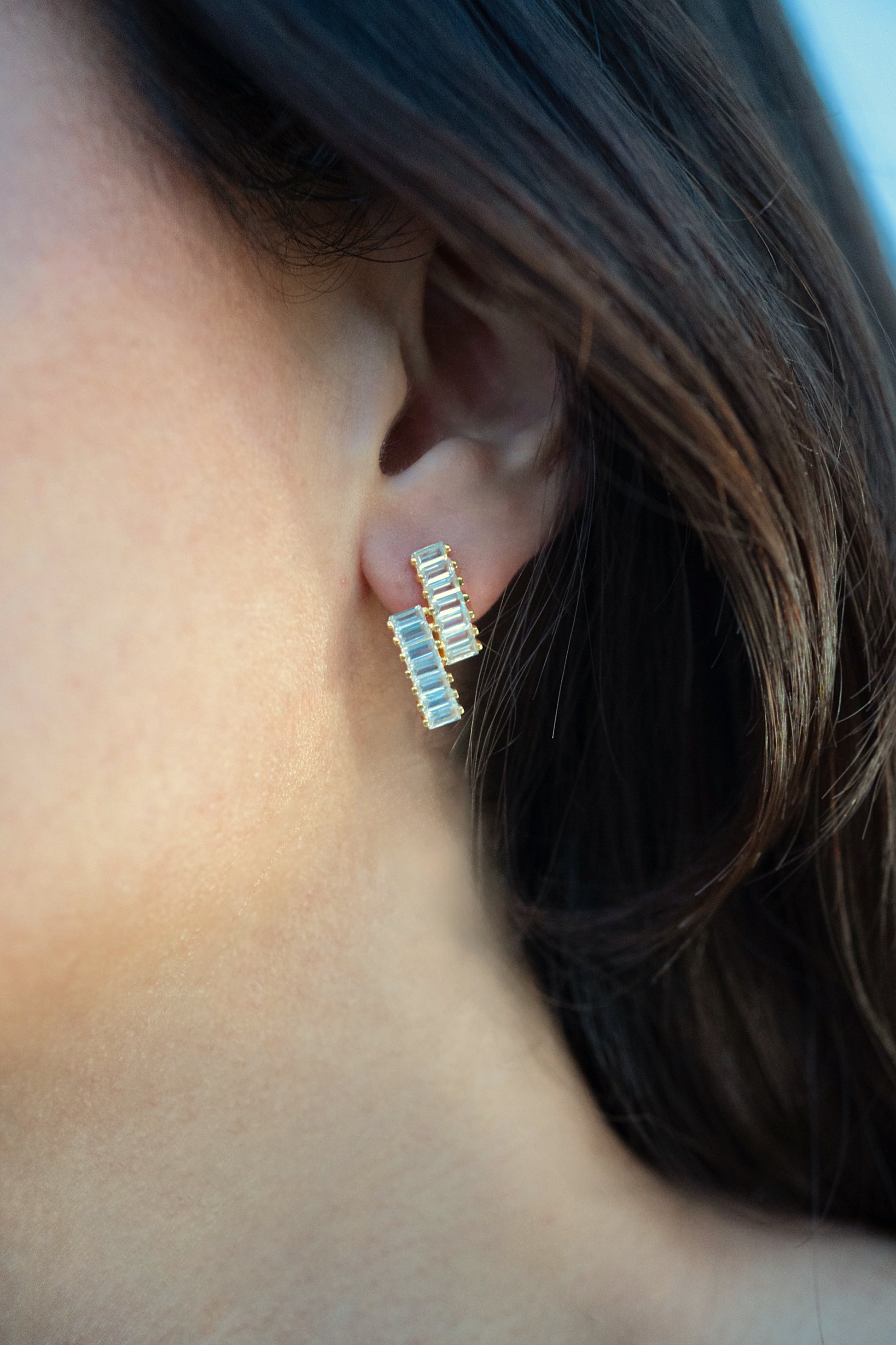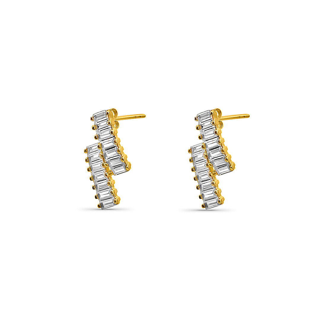 Diese Ohrringe sind ein beeindruckendes Beispiel für modernes Design und exquisite Handwerkskunst. Diese Ohrringe aus hochwertigem Material zeichnen sich durch ihre kunstvoll verdrehte Form aus, die mit funkelnden rechteckigen Schmucksteinen besetzt ist. Die klare, geometrische Anordnung der Steine sorgt für ein faszinierendes Spiel von Licht und Schatten, das bei jeder Bewegung atemberaubend wirkt. Perfekt für besondere Anlässe oder als elegantes Highlight für den Alltag, verleihen die Ohrringe jedem Outfit einen Hauch von Luxus und Raffinesse.