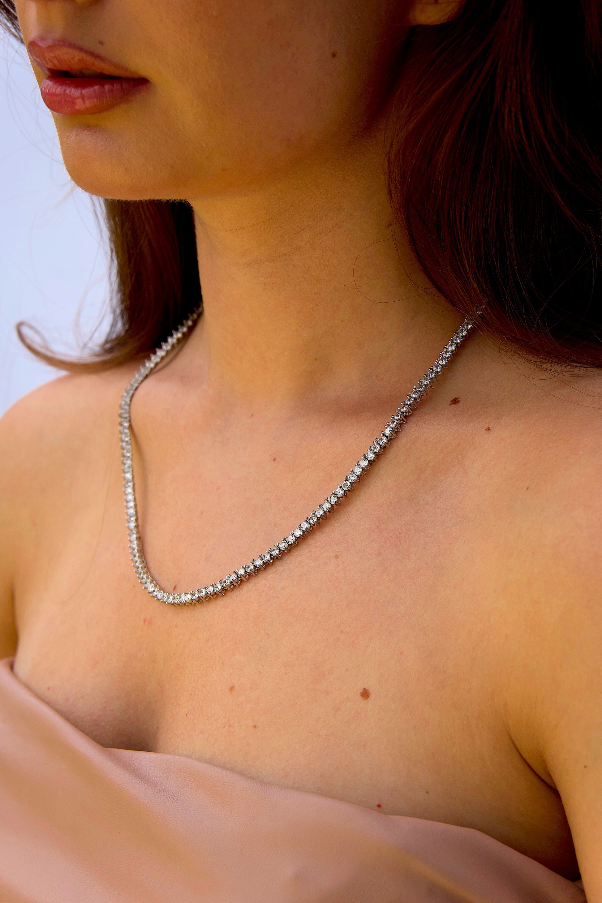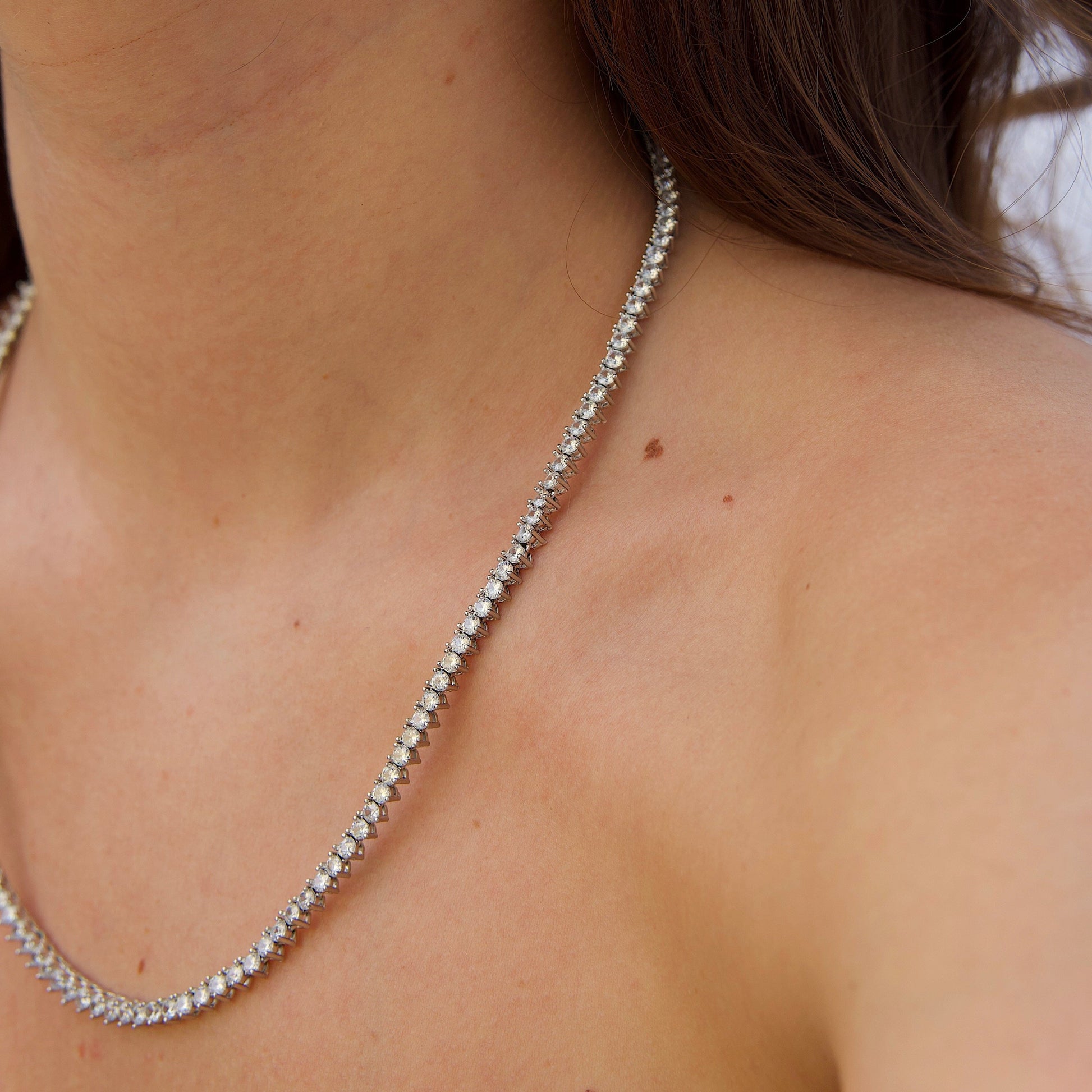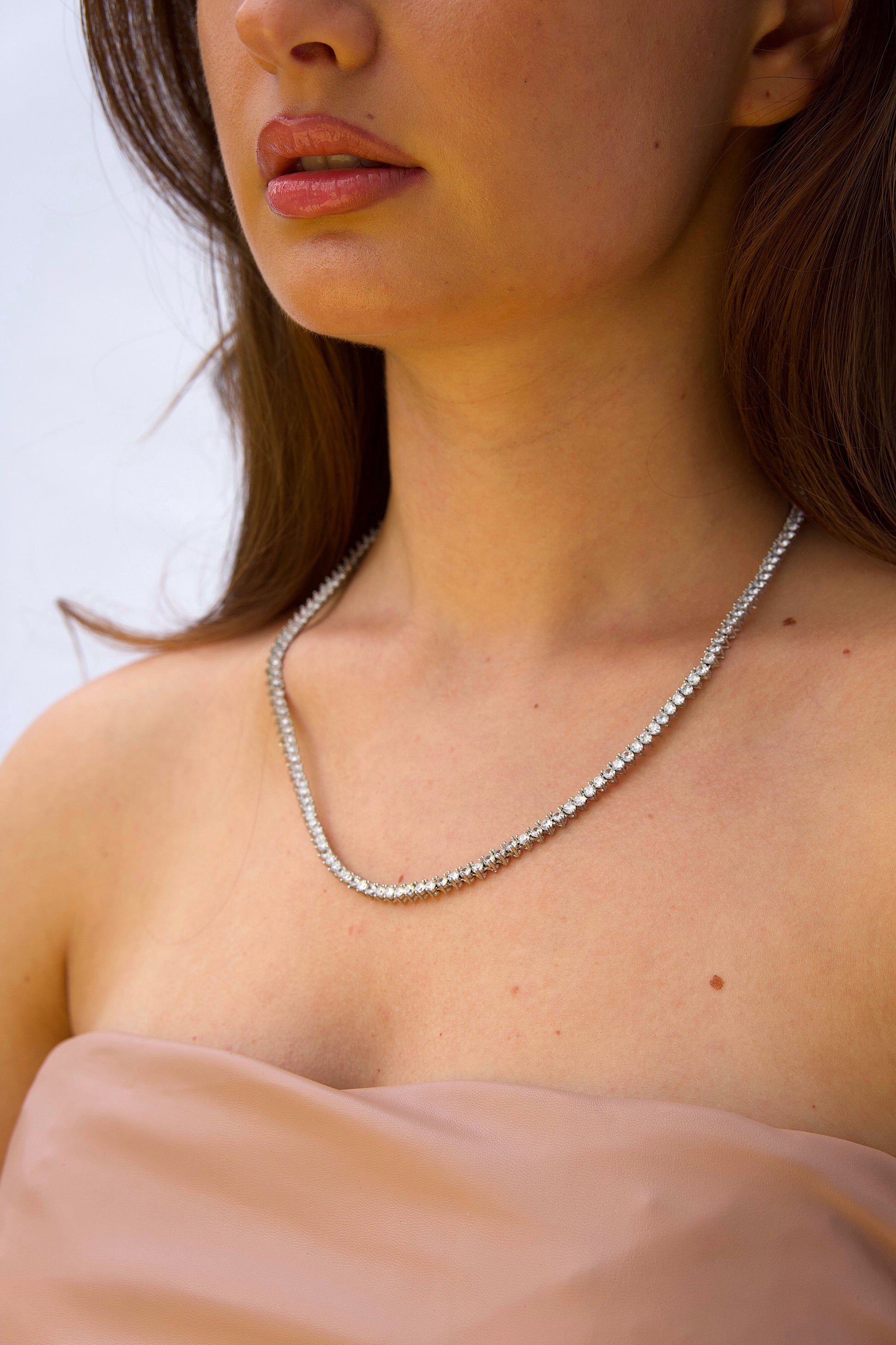 Diese atemberaubende Halskette verkörpert zeitlose Eleganz und funkelnde Raffinesse. Die feine Reihe von exquisiten Zirkonia-Steinen strahlt in jedem Licht und verleiht Ihrem Dekolleté einen unvergesslichen Glanz. Das hochwertige Metall und der sichere Karabinerverschluss garantieren nicht nur Langlebigkeit, sondern auch eine mühelose Handhabung. Tragen Sie diese Kette als perfektes Accessoire zu besonderen Anlässen oder verleihen Sie Ihrem täglichen Look einen Hauch von Luxus. In Kombination mit anderen Schmuckstücken, wie einer farbigen Anhängerkette, wird Ihr Stil auf ein neues Niveau gehoben und zieht bewundernde Blicke auf sich.